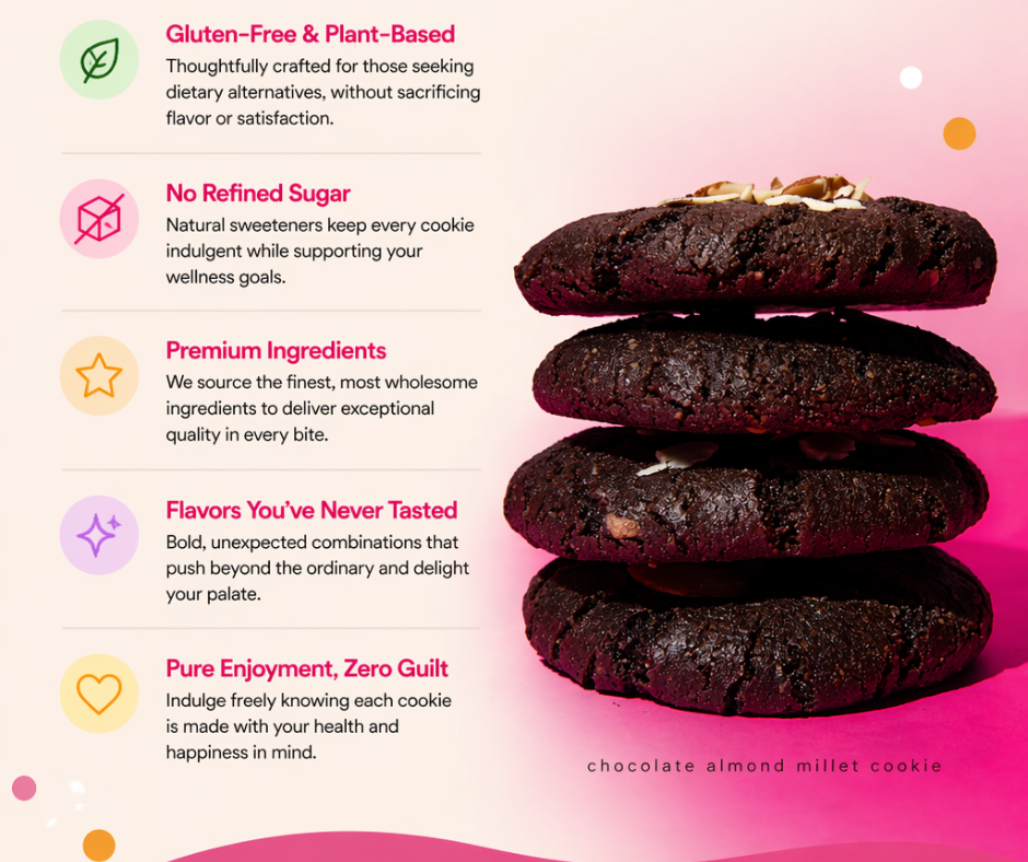 Whether you have health concerns or simply want to make better choices, our cookies let you enjoy every bite without second thoughts.